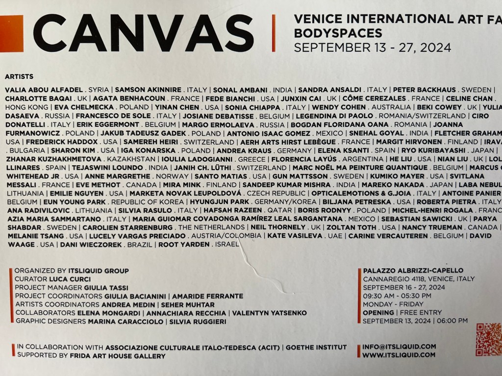 Exposition de 3 œuvres à Venise, pour BODYSPACES (CANVAS Venice International Art Fair 2024, du 13 au 27 septembre)