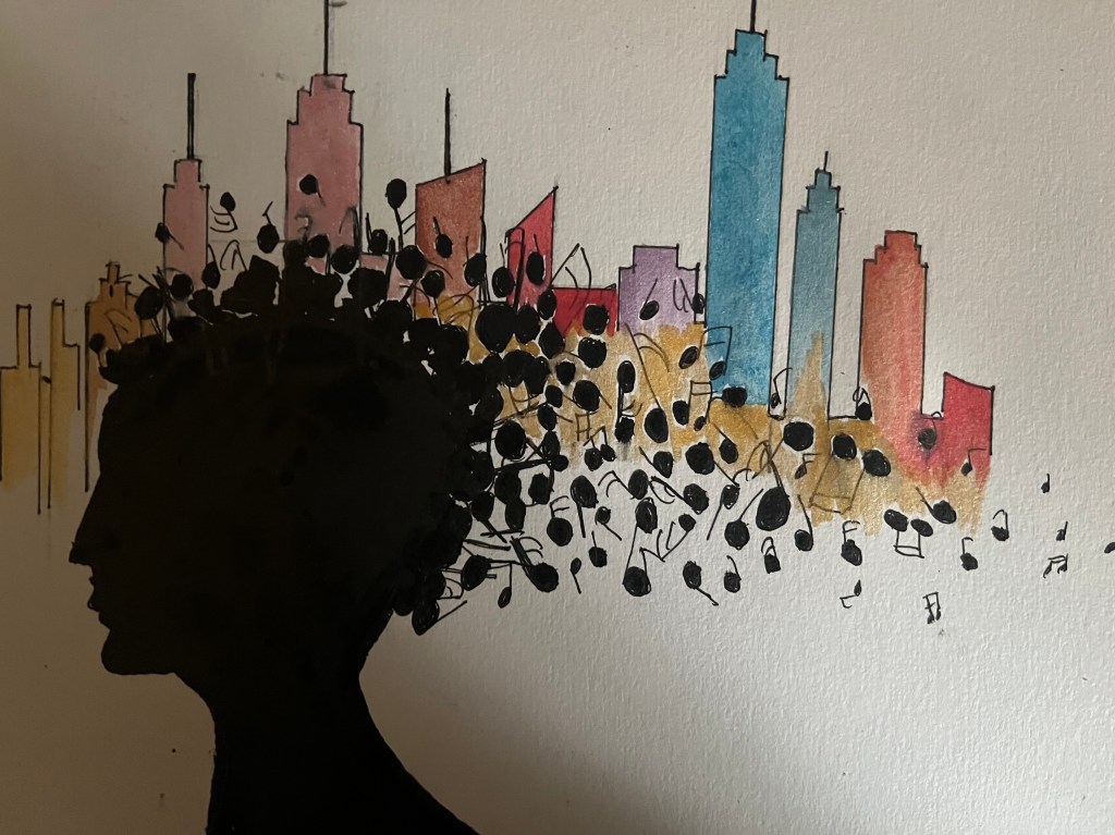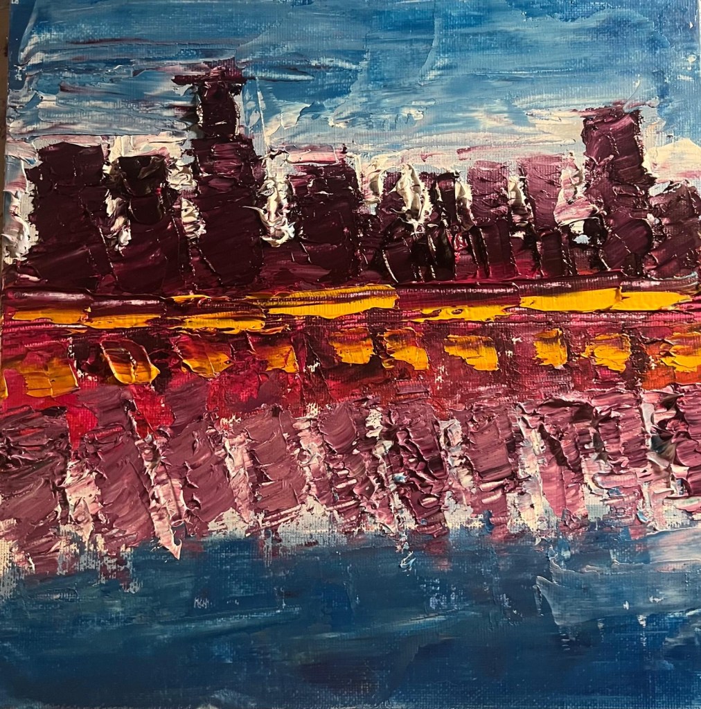 Pour ce concours, je présente “La parlement de Londres librement inspiré de Monet”, “Visage aux notes de musique sur fond de NYC” et “Paysage reflet de la ville de Montréal”
