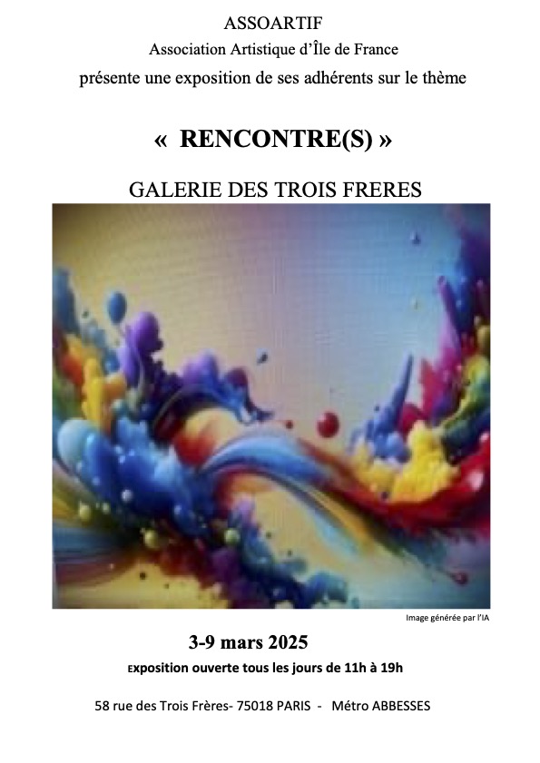 Exposition à la Galerie des Trois Frères, vernissage le 5 mars à 18h