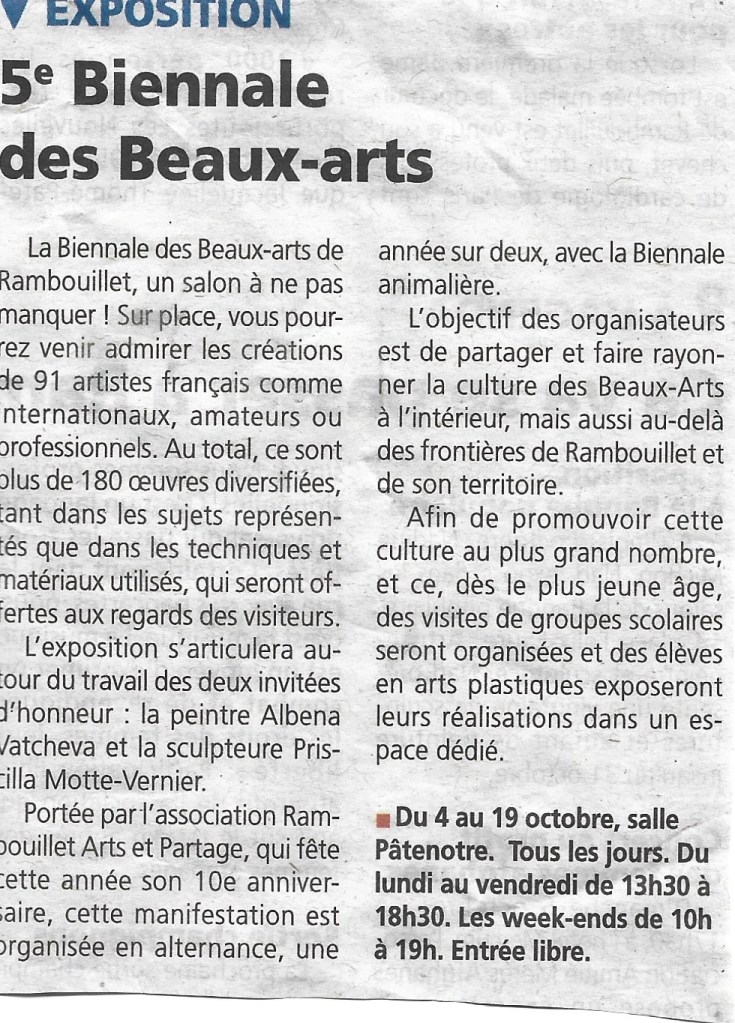Fifth Biennale in Rambouillet, France. More than 90 artists and 180 art works!