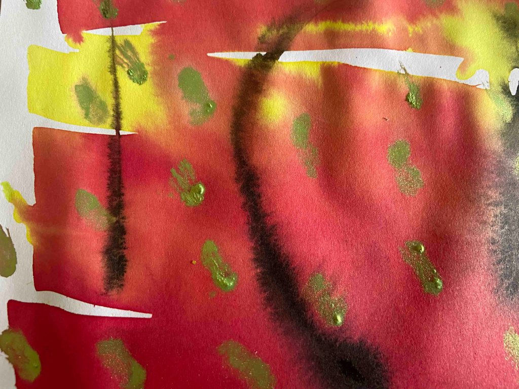 Abstract landscapes’ studies. Using liquid watercolours and black ink. Let them merge and brighten up with colours!