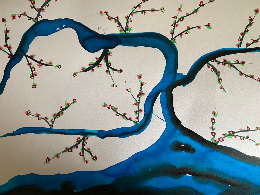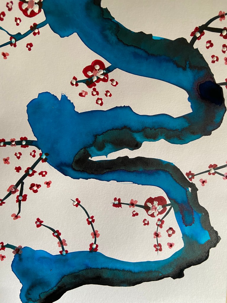 Japanese cherry trees’ studies, still using liquid watercolours and black ink. Very relaxing works.