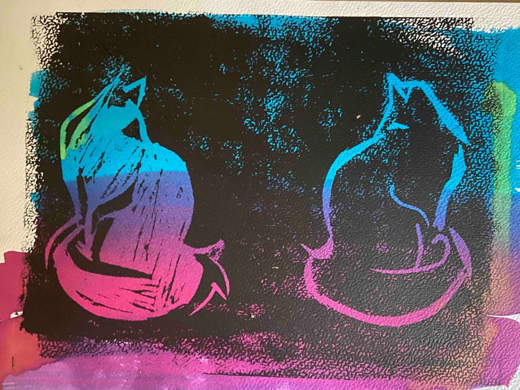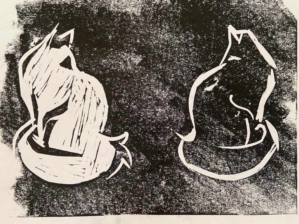 Linoprints – Two cats