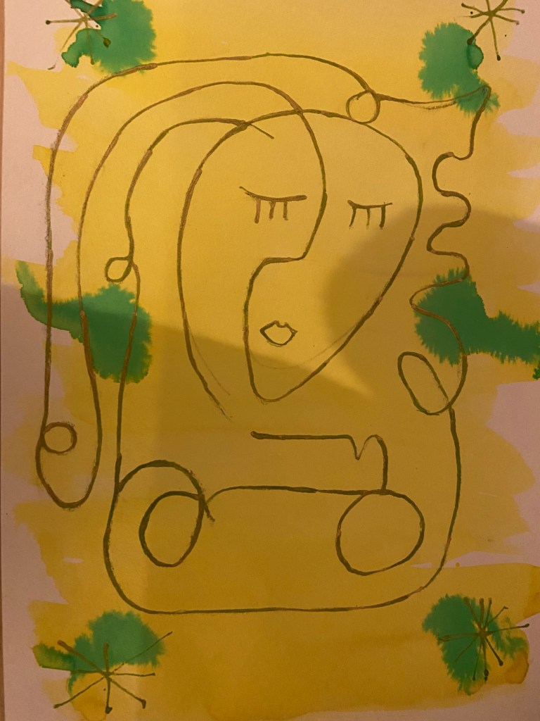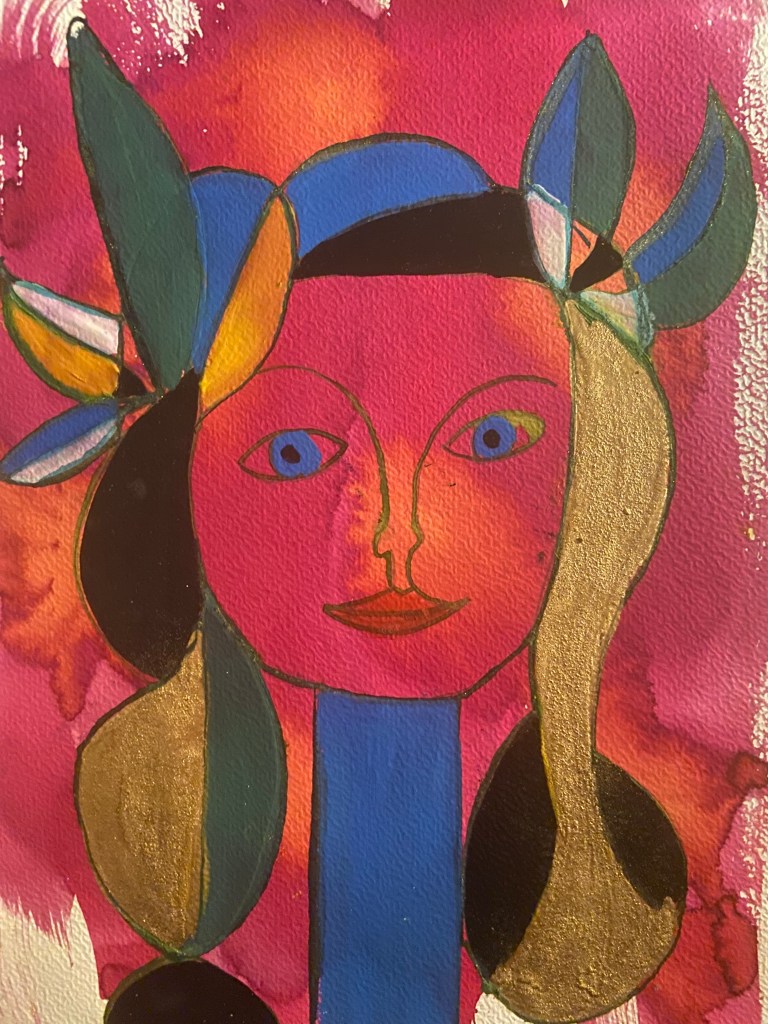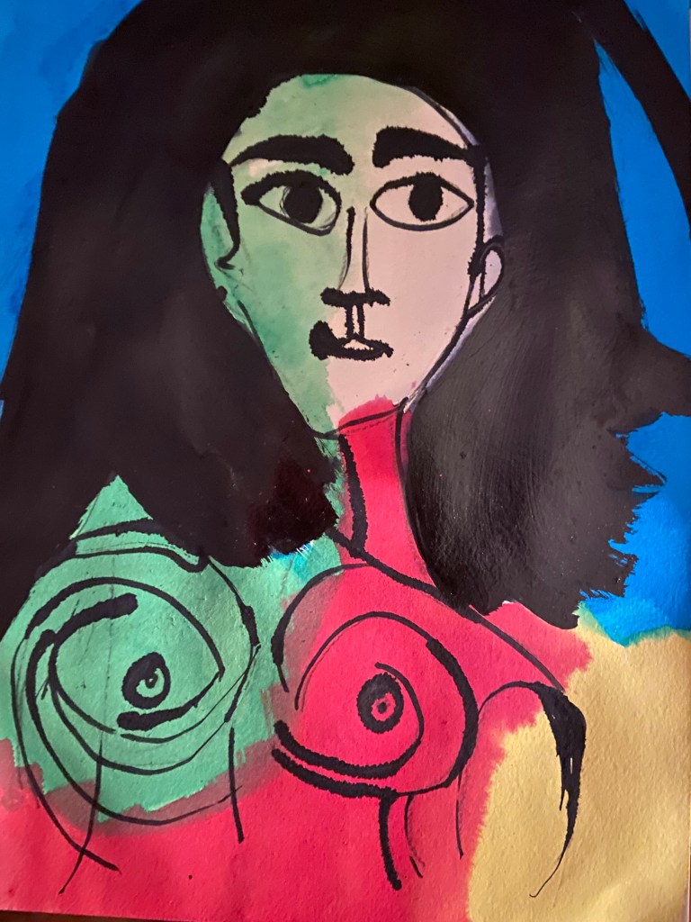 A few portraits freely inspired by Picasso’s. Liquid watercolours, ink and golden paint.