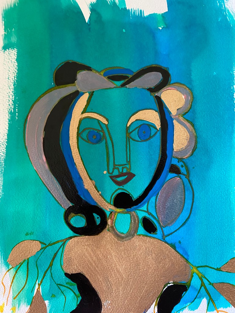Quelques portraits inspirés de Picasso – Encres liquides et peinture dorée.