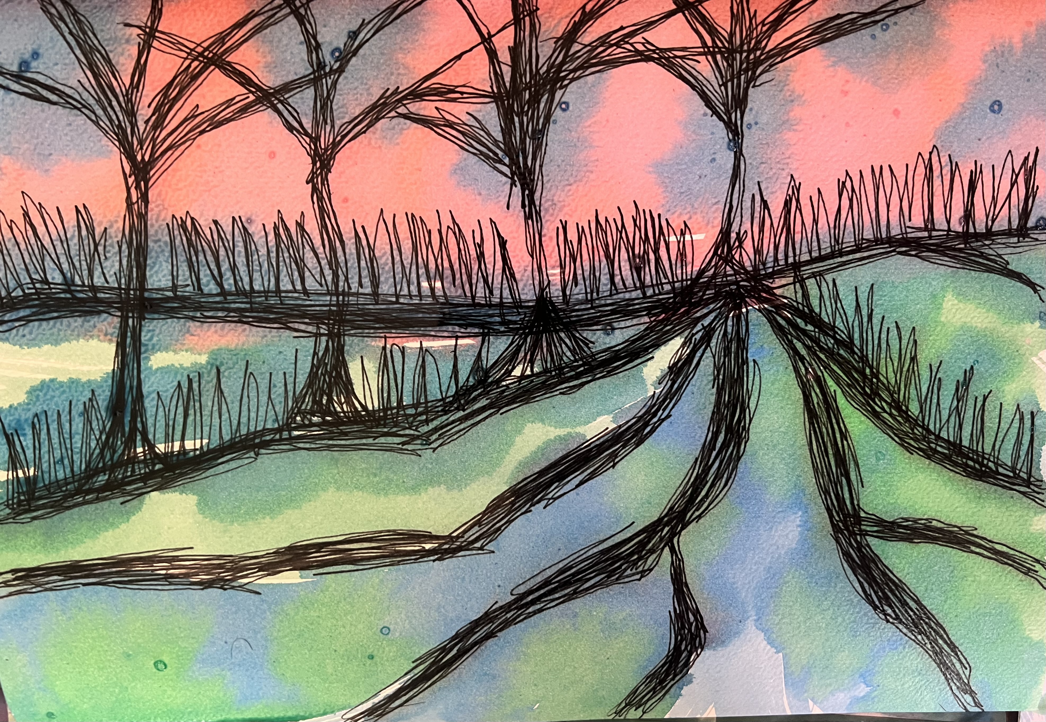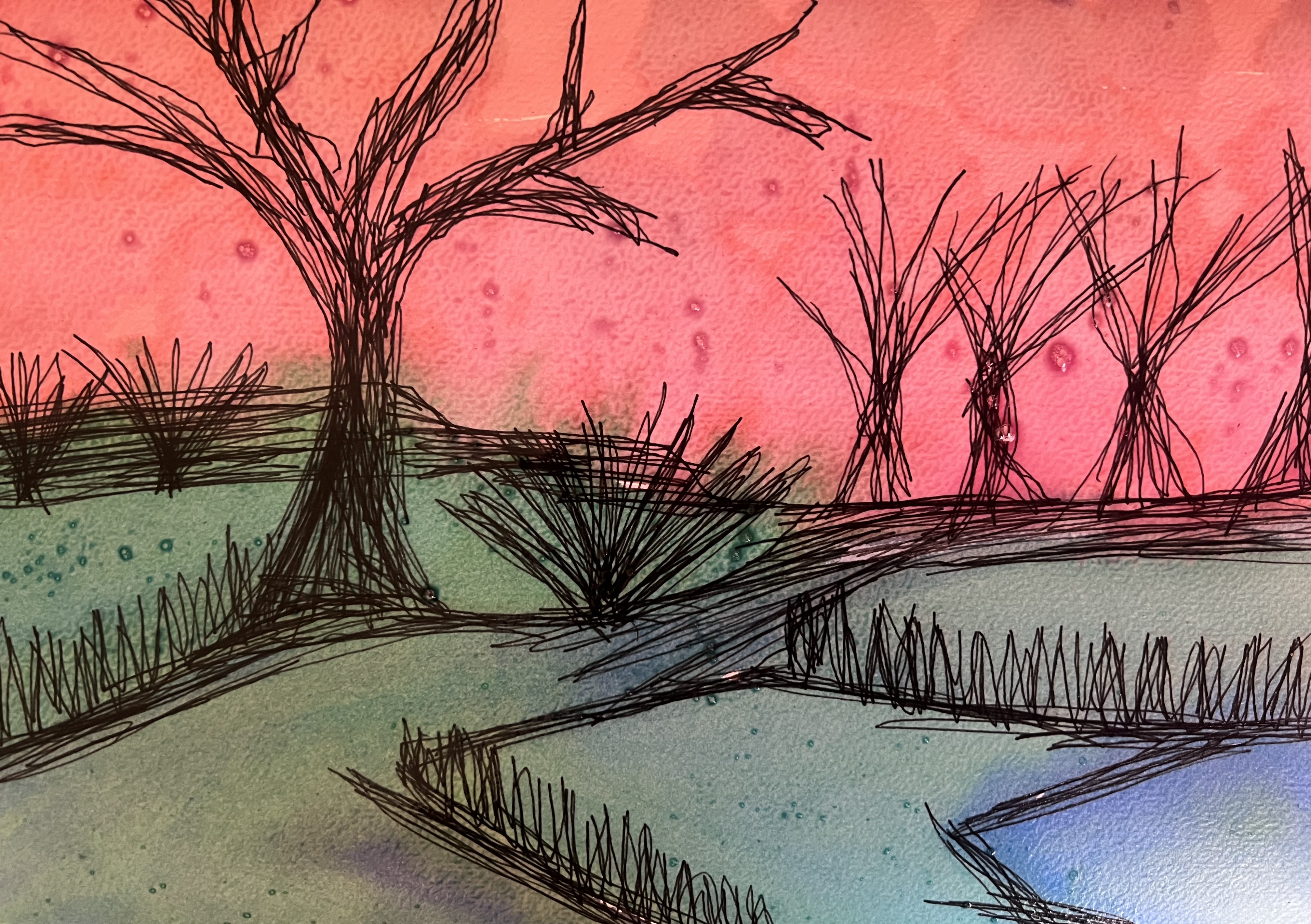 Ma nouvelle série de paysages. A4 – Acrylique et encre de Chine