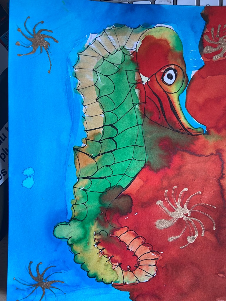 Seahorse, coloured inks
